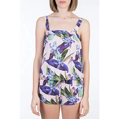 Standard fit 100% rayon Printed soft woven Tank with smocking at top bodice and self straps Icon twill label