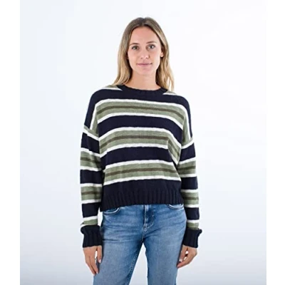 Hurley Women's Morgan Pullover Sweatshirt, Multi Stripe Caviar, L