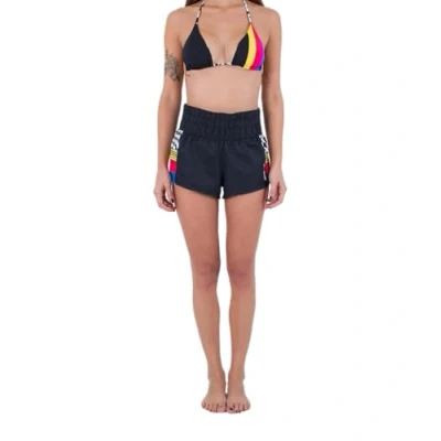 Hurley Women's Nascar Color Blocked 2.5' Boardshort Swimsuit, Black White, L