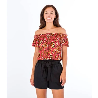 Hurley Women's Off Shoulder Top Shirt, Retro, Floral, XS