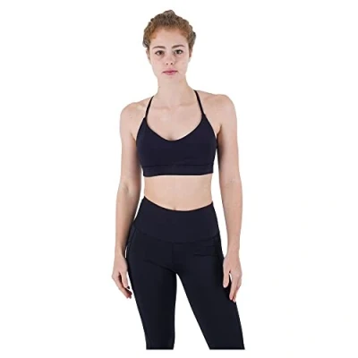 Fixed crossback straps with cutout back detail Varitex stabilizers at center front and side wings for added support Perforated quick dry removable cups Features our signature eco fit fabrication Low impact bra