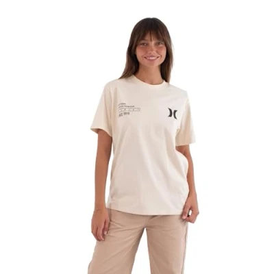 Hurley Womens Short Sleeve Back On 99 T Shirt, Cream Coloured, M EU