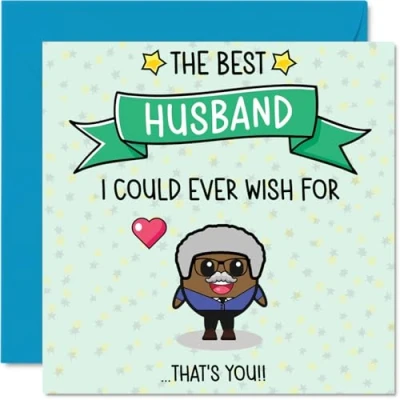 MAKE YOUR HUSBAND SMILE WITH THIS UNIQUE BIRTHDAY CARD: This exceptional quality Husband birthday card for him shows the design 'The Best Husband I Could Ever Wish For? That?s You!!'. @@@jVr5E9bPIKKvQ8Z904oBH5PFONI+sRvx@@@ you are looking for an awesome birthday card Husband for him, then then this happy birthday Husband card is bound to make him smile. Not just a birthday card for Husband this could also be a birthday gifts for Husband, Hubby or Partner. WHAT DO YOU GET: The card is printed on one side and BLANK ON THE INSIDE to allow you to write your very own message. The unique fun design is printed on a specially sourced and environmentally responsible board. At 360 microns thick the natural white one-sided gloss board has a quality look and feel. Supplied with a coloured gummed envelope to complement the design and ready to be sealed and sent in the post. Great Husband birthday cards, Hubby birthday card. NO INK SMUDGES: There is nothing worse than writing inside a card to find that the shiny surface makes the ink smudge. This is why we use a high quality one sided coated board. The uncoated side will absorb more of the ink from your pen to make smudging a thing of the past. Husband birthday cards, Husband birthday cards from Wife. SIZES: Greeting Card = 145mm x 145mm, Envelope = 155mm x 155mm, Card Thickness = 360 micron. Happy birthday Husband, Husbands birthday card, Husband cards birthday, birthday card Husband, happy birthday Husband card, Husband gifts from Wife. MADE AND QUALITY CHECKED IN THE UK: We print and manufacture all our products right here in the UK so you can be sure of a fast turnaround and a product that is expertly made. Using environmentally responsible premium board our card is conscious of the responsible management of the world's forests - happy birthday card Husband, Husband birthday cards.