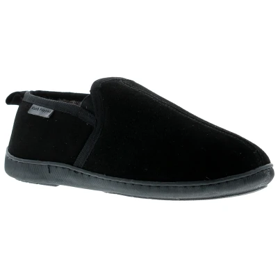 Hush Puppies Arnold Suede Mens Full Slippers Memory Foam Faux Fur Lining Black. Leather Upper. Fabric Lining. Synthetic Sole. Mens Gents Gemtlemens Comfort Suede Fur Lined Slipper.