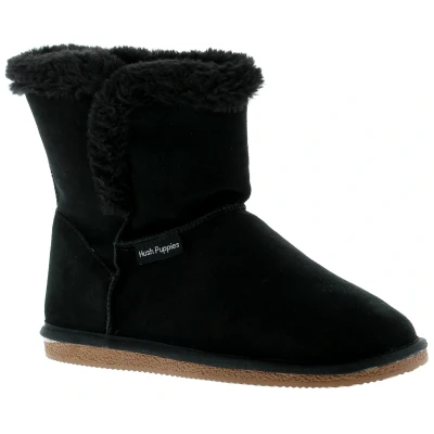 Hush Puppies Womens Boots Ankle Ashleigh Leather Slip On Black. Suede Upper. Faux Fur Lining. Tpr Sole. Footwear Slippers.