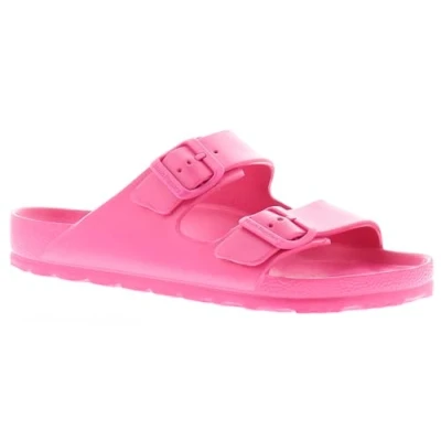 Basically, a pool float for your feet. Float away in these ultra-lightweight Summer slides. Perfect for pool parties and easy holiday packing. Made from 30% recycled Ethylene Vinyl Acetate foam, which can be 100% recycled at the end of its life as a shoe. Vegan certified product from the shoes to the buckles to the box. Super lightweight, soft and comfortable. Easy to kick on and off all Summer. Easy Slip On Mule Styling with Double Branded Buckles