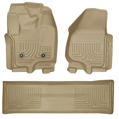 Husky Liners — Weatherbeater Fits 2011 2012 Ford F 250/F 350 SuperCab w/o DS Foot Rest or Manual Shifter Front & 2nd Row Liner (Footwell Coverage) Tan, 3 pc. 99713