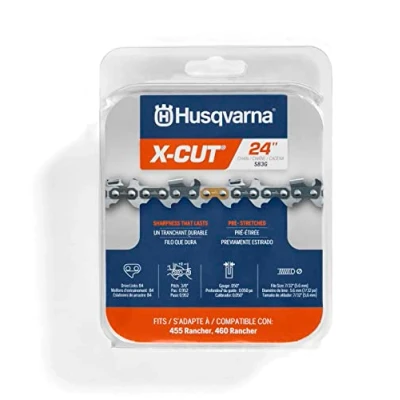 Husqvarna’s X-Cut chain is ready to supercharge your homeowner or professional chainsaw cutting work. Fits select 24 in. chainsaw bars from Husqvarna Sharpness straight out of the box that lasts longer before needing to be sharpened. High durability thanks to a precisely balanced combination of materials and manufacturing processes. Pre-stretched at the factory so it works longer without needing to be adjusted. Oil-shaped channels in the links transport oil to the X-Cut, resulting in superior lubrication and less wear and tear on your saw., Weight: 0.89 pounds, Manufacturer: Husqvarna