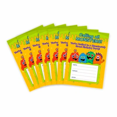 Huxters 14 pcs Monster Birthday Kids' Party Invitations for Boys Girls Unisex LOL Theme Invites Childrens Supplies Double Sided (Monster)