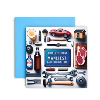 From Huxters, this is the manliest card we could find: a tribute to all things bold and brave. Surrounded by symbols of strength and adventure, may your birthday be a celebration of the extraordinary man you are. 350GSM Uncoated Paper: This birthday card for men and women is made with premium uncoated paper, with compostable polybag and intense non-fading colors achieved through state of the art printing technologies. Elegant Envelope: Now you can say goodbye to the constant hassle of trying to find a suitable envelope! This Friend birthday card arrives in a cute yellow envelope, keeping your card away from dust, oily fingerprints, or from curious eyes! A Personal Touch: With a blank and fully customizable interior, this happy birthday card for her allows you to express your birthday wishes in a cute and personal way, nicely accommodating your words, drawings or poem! Fun and Versatile: These greeting cards are simple but eye-catchy and funny, which makes them extremely versatile and perfect for an unforgettable birthday! You can offer the card to both men and women of all ages, friends, family, best friend, fiancé, or spouse and be sure to make their day even more special.