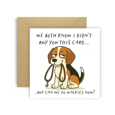 A funny Huxters Beagle card from the dog, featuring the cheeky phrase “We Both Know I Didn’t Buy You This Card… But Can We Go Walkies Now?”. Perfect for birthdays and dog lovers. 350GSM Uncoated Paper: This birthday card for men and women is made with premium uncoated paper, with compostable polybag and intense non-fading colors achieved through state of the art printing technologies. Stylish Envelope: Now you can say goodbye to the constant hassle of trying to find a suitable envelope! This Friend birthday card arrives in a cute yellow envelope, keeping your card away from dust, oily fingerprints, or from curious eyes! A Personal Touch: With a blank and fully customizable interior, this happy birthday card for her allows you to express your birthday wishes in a cute and personal way, nicely accommodating your words, drawings or poem! Fun and Versatile: These greeting cards are simple but eye-catchy and funny, which makes them extremely versatile and perfect for an unforgettable birthday! You can offer the card to both men and women of all ages, friends, family, best friend, fiancé, or spouse and be sure to make their day even more special.