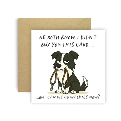 A funny Huxters Border Collie card from the dog, featuring the cheeky phrase “We Both Know I Didn’t Buy You This Card… But Can We Go Walkies Now?”. Perfect for birthdays and dog lovers. 350GSM Uncoated Paper: This birthday card for men and women is made with premium uncoated paper, with compostable polybag and intense non-fading colors achieved through state of the art printing technologies. Stylish Envelope: Now you can say goodbye to the constant hassle of trying to find a suitable envelope! This Friend birthday card arrives in a cute yellow envelope, keeping your card away from dust, oily fingerprints, or from curious eyes! A Personal Touch: With a blank and fully customizable interior, this happy birthday card for her allows you to express your birthday wishes in a cute and personal way, nicely accommodating your words, drawings or poem! Fun and Versatile: These greeting cards are simple but eye-catchy and funny, which makes them extremely versatile and perfect for an unforgettable birthday! You can offer the card to both men and women of all ages, friends, family, best friend, fiancé, or spouse and be sure to make their day even more special.