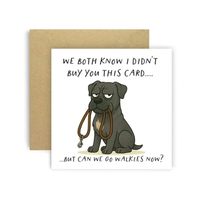 A funny Huxters Cane Corso card from the dog, featuring the cheeky phrase “We Both Know I Didn’t Buy You This Card… But Can We Go Walkies Now?”. Perfect for birthdays and dog lovers. 350GSM Uncoated Paper: This birthday card for men and women is made with premium uncoated paper, with compostable polybag and intense non-fading colors achieved through state of the art printing technologies. Stylish Envelope: Now you can say goodbye to the constant hassle of trying to find a suitable envelope! This Friend birthday card arrives in a cute yellow envelope, keeping your card away from dust, oily fingerprints, or from curious eyes! A Personal Touch: With a blank and fully customizable interior, this happy birthday card for her allows you to express your birthday wishes in a cute and personal way, nicely accommodating your words, drawings or poem! Fun and Versatile: These greeting cards are simple but eye-catchy and funny, which makes them extremely versatile and perfect for an unforgettable birthday! You can offer the card to both men and women of all ages, friends, family, best friend, fiancé, or spouse and be sure to make their day even more special.