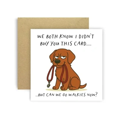A funny Huxters Fox Red Labrador card from the dog, featuring the cheeky phrase “We Both Know I Didn’t Buy You This Card… But Can We Go Walkies Now?”. Perfect for birthdays and dog lovers. 350GSM Uncoated Paper: This birthday card for men and women is made with premium uncoated paper, with compostable polybag and intense non-fading colors achieved through state of the art printing technologies. Stylish Envelope: Now you can say goodbye to the constant hassle of trying to find a suitable envelope! This Friend birthday card arrives in a cute yellow envelope, keeping your card away from dust, oily fingerprints, or from curious eyes! A Personal Touch: With a blank and fully customizable interior, this happy birthday card for her allows you to express your birthday wishes in a cute and personal way, nicely accommodating your words, drawings or poem! Fun and Versatile: These greeting cards are simple but eye-catchy and funny, which makes them extremely versatile and perfect for an unforgettable birthday! You can offer the card to both men and women of all ages, friends, family, best friend, fiancé, or spouse and be sure to make their day even more special.