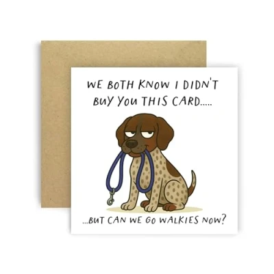 A funny Huxters German Shorthaired Pointer card from the dog, featuring the cheeky phrase “We Both Know I Didn’t Buy You This Card… But Can We Go Walkies Now?”. Perfect for birthdays and dog lovers. 350GSM Uncoated Paper: This birthday card for men and women is made with premium uncoated paper, with compostable polybag and intense non-fading colors achieved through state of the art printing technologies. Stylish Envelope: Now you can say goodbye to the constant hassle of trying to find a suitable envelope! This Friend birthday card arrives in a cute yellow envelope, keeping your card away from dust, oily fingerprints, or from curious eyes! A Personal Touch: With a blank and fully customizable interior, this happy birthday card for her allows you to express your birthday wishes in a cute and personal way, nicely accommodating your words, drawings or poem! Fun and Versatile: These greeting cards are simple but eye-catchy and funny, which makes them extremely versatile and perfect for an unforgettable birthday! You can offer the card to both men and women of all ages, friends, family, best friend, fiancé, or spouse and be sure to make their day even more special.