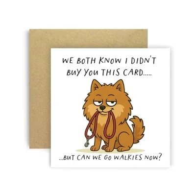 A funny Huxters Pomeranian card from the dog, featuring the cheeky phrase “We Both Know I Didn’t Buy You This Card… But Can We Go Walkies Now?”. Perfect for birthdays and dog lovers. 350GSM Uncoated Paper: This birthday card for men and women is made with premium uncoated paper, with compostable polybag and intense non-fading colors achieved through state of the art printing technologies. Stylish Envelope: Now you can say goodbye to the constant hassle of trying to find a suitable envelope! This Friend birthday card arrives in a cute yellow envelope, keeping your card away from dust, oily fingerprints, or from curious eyes! A Personal Touch: With a blank and fully customizable interior, this happy birthday card for her allows you to express your birthday wishes in a cute and personal way, nicely accommodating your words, drawings or poem! Fun and Versatile: These greeting cards are simple but eye-catchy and funny, which makes them extremely versatile and perfect for an unforgettable birthday! You can offer the card to both men and women of all ages, friends, family, best friend, fiancé, or spouse and be sure to make their day even more special.