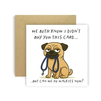 A funny Huxters Pug card from the dog, featuring the cheeky phrase “We Both Know I Didn’t Buy You This Card… But Can We Go Walkies Now?”. Perfect for birthdays and dog lovers. 350GSM Uncoated Paper: This birthday card for men and women is made with premium uncoated paper, with compostable polybag and intense non-fading colors achieved through state of the art printing technologies. Stylish Envelope: Now you can say goodbye to the constant hassle of trying to find a suitable envelope! This Friend birthday card arrives in a cute yellow envelope, keeping your card away from dust, oily fingerprints, or from curious eyes! A Personal Touch: With a blank and fully customizable interior, this happy birthday card for her allows you to express your birthday wishes in a cute and personal way, nicely accommodating your words, drawings or poem! Fun and Versatile: These greeting cards are simple but eye-catchy and funny, which makes them extremely versatile and perfect for an unforgettable birthday! You can offer the card to both men and women of all ages, friends, family, best friend, fiancé, or spouse and be sure to make their day even more special.