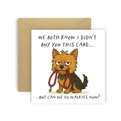A funny Huxters Yorkshire Terrier card from the dog, featuring the cheeky phrase “We Both Know I Didn’t Buy You This Card… But Can We Go Walkies Now?”. Perfect for birthdays and dog lovers. 350GSM Uncoated Paper: This birthday card for men and women is made with premium uncoated paper, with compostable polybag and intense non-fading colors achieved through state of the art printing technologies. Stylish Envelope: Now you can say goodbye to the constant hassle of trying to find a suitable envelope! This Friend birthday card arrives in a cute yellow envelope, keeping your card away from dust, oily fingerprints, or from curious eyes! A Personal Touch: With a blank and fully customizable interior, this happy birthday card for her allows you to express your birthday wishes in a cute and personal way, nicely accommodating your words, drawings or poem! Fun and Versatile: These greeting cards are simple but eye-catchy and funny, which makes them extremely versatile and perfect for an unforgettable birthday! You can offer the card to both men and women of all ages, friends, family, best friend, fiancé, or spouse and be sure to make their day even more special.