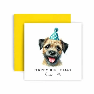 Wish your loved ones a Happy Birthday from the adorable Border Terrier, featured in a delightful watercolour illustration wearing a party hat, brought to you by Huxters. Perfect for dog lovers! 350GSM Uncoated Paper: This birthday card for men and women is made with premium uncoated paper, with compostable polybag and intense non-fading colors achieved through state of the art printing technologies. Elegant Envelope: Now you can say goodbye to the constant hassle of trying to find a suitable envelope! This Friend birthday card arrives in a cute yellow envelope, keeping your card away from dust, oily fingerprints, or from curious eyes! A Personal Touch: With a blank and fully customizable interior, this happy birthday card for her allows you to express your birthday wishes in a cute and personal way, nicely accommodating your words, drawings or poem! Fun and Versatile: These greeting cards are simple but eye-catchy and funny, which makes them extremely versatile and perfect for an unforgettable birthday! You can offer the card to both men and women of all ages, friends, family, best friend, fiancé, or spouse and be sure to make their day even more special.