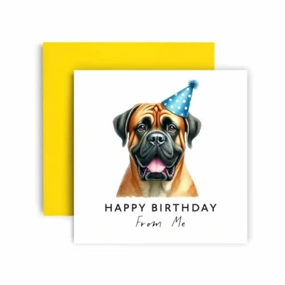 Huxters Birthday Card from the Dog Bullmastiff Happy to Mum and Dad Friends Family First (Bullmastiff)