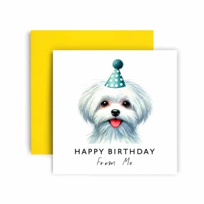 Huxters Birthday Card from the Dog Maltese Happy to Mum and Dad Friends Family First (Maltese)