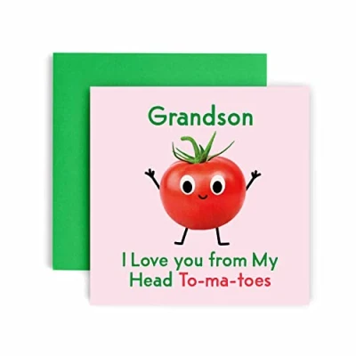 Huxters Birthday Cards for Men I Love You Grandson Card him Funny Happy Fun Tomato 14.8cm (Grandson)
