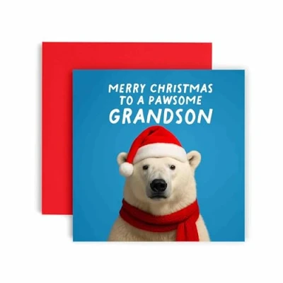 Huxters Christmas card for Grandson Funny Polar Bear Xmas Cards (Grandson)