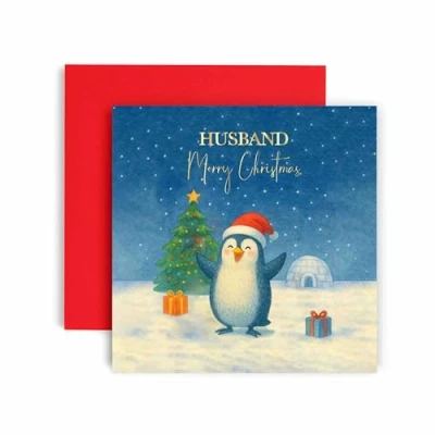 Huxters Christmas card for Husband Lovely Penguin Illustrated Xmas Cards (Husband)