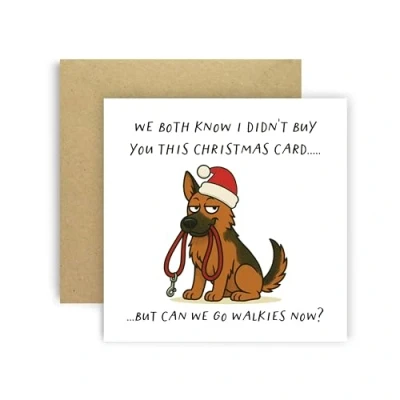 Huxters Funny Christmas Card from Dog Alsatian for Mum Dad Doggy Parents Dogs Cards We Both Know I Didn’t Buy You This But Can Go Walkies Now? (Alsatian)