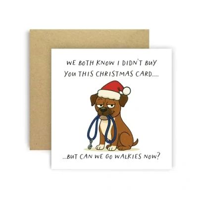 Huxters Funny Christmas Card from Dog Boxer for Mum Dad Doggy Parents Dogs Cards We Both Know I Didn’t Buy You This But Can Go Walkies Now? (Boxer)