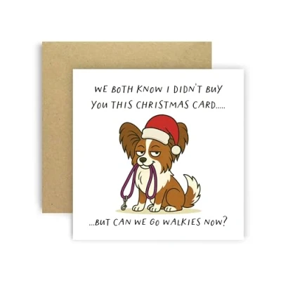 Huxters Funny Christmas Card from Dog Papillon for Mum Dad Doggy Parents Dogs Cards We Both Know I Didn’t Buy You This But Can Go Walkies Now? (Papillon)