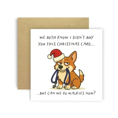 Huxters Funny Christmas Card from Dog Pembroke Welsh Corgi for Mum Dad Doggy Parents Dogs Cards We Both Know I Didn’t Buy You This But Can Go Walkies Now? (Pembroke Corgi)