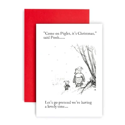 Huxters Funny Christmas Cards for Men and Women Pooh Piglet Pretend Festive Holiday Dad Mum Card Brother SIster Niece Nephew