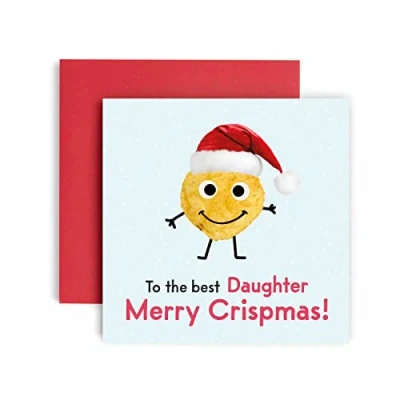 Huxters Merry Crispmas Daughter Christmas Card for her Funny Sister Blank Interior Xmas with Recyclable Envelope Paper (Daughter)