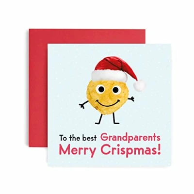 Huxters Merry Crispmas Grandparents Christmas Card for him and her Funny Blank Interior Xmas with Recyclable Envelope Paper (Grandparents)