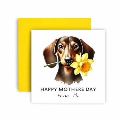 Send Mother's Day Love form the Dog. This beautiful and thoughful painting of a Dachshund, feautures a sentimental watercolour illustration holding a a Daffodil, showing they will always be loved and never forgotten. 350GSM Uncoated Paper: This birthday card for men and women is made with premium uncoated paper, with compostable polybag and intense non-fading colors achieved through state of the art printing technologies. Our Huxters envelope is carefully chosen to match the occasion, adding a perfect finishing touch to your special message. A Personal Touch: With a blank and fully customizable interior, this happy birthday card for her allows you to express your birthday wishes in a cute and personal way, nicely accommodating your words, drawings or poem! Fun and Versatile: These greeting cards are simple but eye-catchy and funny, which makes them extremely versatile and perfect for an unforgettable birthday! You can offer the card to both men and women of all ages, friends, family, best friend, fiancé, or spouse and be sure to make their day even more special.