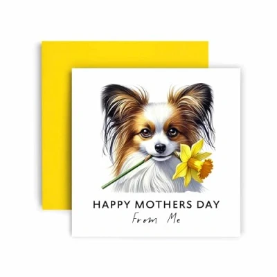 Send Mother's Day Love form the Dog. This beautiful and thoughful painting of a Papillon, feautures a sentimental watercolour illustration holding a a Daffodil, sending love which they probably dug up form the garden! 350GSM Uncoated Paper: This birthday card for men and women is made with premium uncoated paper, with compostable polybag and intense non-fading colors achieved through state of the art printing technologies. Our Huxters envelope is carefully chosen to match the occasion, adding a perfect finishing touch to your special message. A Personal Touch: With a blank and fully customizable interior, this happy birthday card for her allows you to express your birthday wishes in a cute and personal way, nicely accommodating your words, drawings or poem! Fun and Versatile: These greeting cards are simple but eye-catchy and funny, which makes them extremely versatile and perfect for an unforgettable birthday! You can offer the card to both men and women of all ages, friends, family, best friend, fiancé, or spouse and be sure to make their day even more special.