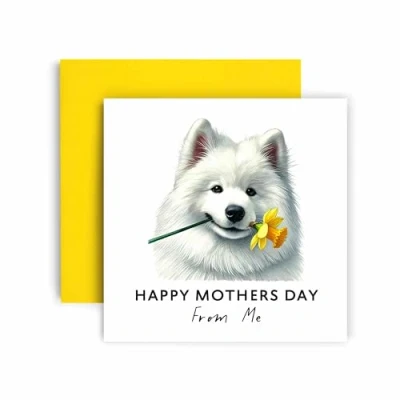 Send Mother's Day Love form the Dog. This beautiful and thoughful painting of a Samoyed, feautures a sentimental watercolour illustration holding a a Daffodil, sending love which they probably dug up form the garden! 350GSM Uncoated Paper: This birthday card for men and women is made with premium uncoated paper, with compostable polybag and intense non-fading colors achieved through state of the art printing technologies. Our Huxters envelope is carefully chosen to match the occasion, adding a perfect finishing touch to your special message. A Personal Touch: With a blank and fully customizable interior, this happy birthday card for her allows you to express your birthday wishes in a cute and personal way, nicely accommodating your words, drawings or poem! Fun and Versatile: These greeting cards are simple but eye-catchy and funny, which makes them extremely versatile and perfect for an unforgettable birthday! You can offer the card to both men and women of all ages, friends, family, best friend, fiancé, or spouse and be sure to make their day even more special.