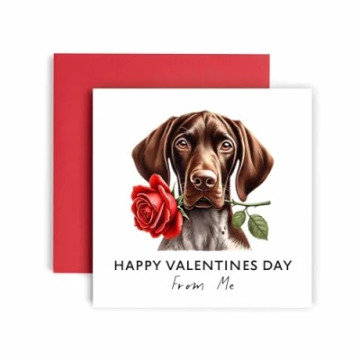 Wish your True Love a Happy Valentines from the adorable German Shorthaired Pointer, featured in a delightful watercolour illustration holding a rose, brought to you by Huxters. Perfect for dog lovers! 350GSM Uncoated Paper: This birthday card for men and women is made with premium uncoated paper, with compostable polybag and intense non-fading colors achieved through state of the art printing technologies. Our Huxters envelope is carefully chosen to match the occasion, adding a perfect finishing touch to your special message. A Personal Touch: With a blank and fully customizable interior, this happy birthday card for her allows you to express your birthday wishes in a cute and personal way, nicely accommodating your words, drawings or poem! Fun and Versatile: These greeting cards are simple but eye-catchy and funny, which makes them extremely versatile and perfect for an unforgettable birthday! You can offer the card to both men and women of all ages, friends, family, best friend, fiancé, or spouse and be sure to make their day even more special.