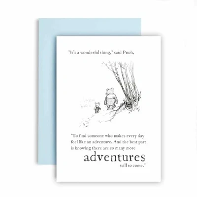 Celebrate their wedding day with the Huxters "Adventure" Pooh and Piglet card, featuring a sweet marriage-themed quote and blank inside for your own message. 350GSM Uncoated Paper: This birthday card for men and women is made with premium uncoated paper, with compostable polybag and intense non-fading colors achieved through state of the art printing technologies. Colour Envelope: Now you can say goodbye to the constant hassle of trying to find a suitable envelope! This Friend birthday card arrives in a cute yellow envelope, keeping your card away from dust, oily fingerprints, or from curious eyes! A Personal Touch: With a blank and fully customizable interior, this happy birthday card for her allows you to express your birthday wishes in a cute and personal way, nicely accommodating your words, drawings or poem! Fun and Versatile: These greeting cards are simple but eye-catchy and funny, which makes them extremely versatile and perfect for an unforgettable birthday! You can offer the card to both men and women of all ages, friends, family, best friend, fiancé, or spouse and be sure to make their day even more special.