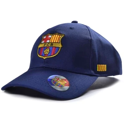 AUTHENTIC DESIGN: Official FC Barcelona baseball cap featuring the iconic club crest embroidered on navy blue fabric with traditional team colours PREMIUM QUALITY: High-grade cotton construction with detailed embroidery work and durable stitching throughout ADJUSTABLE FIT: Convenient rear strap allows for customised sizing to ensure comfortable wear for most head sizes STYLISH DETAILS: Features distinctive Catalan flag stripes detail and metallic club emblem on the peak for authentic style PRACTICAL FEATURES: Classic 6-panel construction with pre-curved peak and ventilation eyelets for enhanced comfort