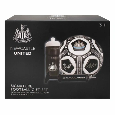 Size 5 Football: Crafted for both play and display, this full-size football features the official Newcastle United branding, making it ideal for match practice, training sessions, or as a collector's item for loyal supporters. 500ml Water Bottle: Stay hydrated during games or workouts with this durable water bottle. Designed for convenience, it fits easily into gym bags and showcases the Newcastle United emblem, allowing fans to display their allegiance wherever they go. Hand Pump: Ensure your football is always match-ready with the included hand pump. Compact and efficient, it's an essential tool for maintaining optimal ball pressure, ensuring peak performance during play. Official Newcastle United FC Branding: Each item in the set proudly displays the official Newcastle United crest, affirming its authenticity and making it a cherished addition to any fan's collection.