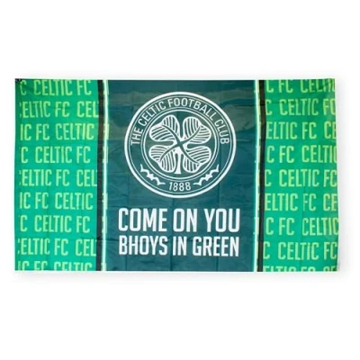 Show Your Pride: Fly your large Celtic flags to support your favourite team with this 5x3ft flag (approx. 150cm x 90cm), featuring the Celtic crest. Whether at the stadium or watching from home, show everyone where your loyalty lies Stunning Design: The bold football crest pop against the fabric, creating an eye-catching display. A standout among football accessories that'll have fellow supporters nodding in approval Built To Last: Crafted from durable polyester that stands up to wind, rain, and countless celebrations. This flag keeps its vibrant colours match after match, letting you display your passion season after season Ready For Action: This flag arrives ready to fly. Simply unfurl and display - whether you're decorating your garden, bedroom wall, or joining thousands at the next big match Get Ready for Glory: Surprise the supporter in your life with this brilliant football item. It's the ideal present for birthdays, holidays, or that special tournament kick-off - sure to bring smiles all round