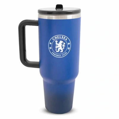 Hy Pro Officially Licensed Chelsea 40oz/1.18 L Thermal Flask & Handle Metal Water Bottle with Straw, Portable for Sports Daily Use Stainless Steel Design