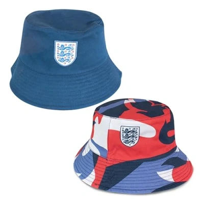 OFFICIALLY LICENSED MERCHANDISE - Show your national pride with this officially licensed England FA reversible bucket hat, featuring the iconic Three Lions logo. REVERSIBLE 2-IN-1 DESIGN - Switch up your style with ease! One side features a bold solid Blue colour, while the other showcases a the three lions print – perfect for match days, festivals, or casual outings. COMFORTABLE & LIGHTWEIGHT - Made from breathable and soft materials, this unisex hat offers all-day comfort. Its flexible structure makes it easy to fold and pack, ideal for holidays, outdoor events, or stadium wear. HIGH QUALITY - Made from durable cotton fabric with reinforced stitching along the brim for lasting shape retention. GREAT GIFT IDEA - Whether it’s for a birthday, tournament season, or just because, this England bucket hat makes a fantastic gift for England football supporters. This bucket hat is a fan-favourite accessory and standout among England FA football gear, this reversible hat is great for those searching for England fan apparel, merchandise, and football bucket hats.