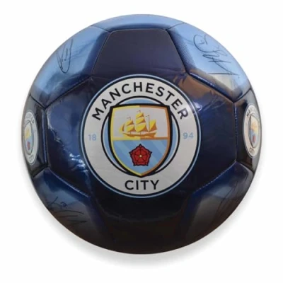 OFFICIALLY LICENSED MERCHANDISE| Hy-Pro are proud to showcase this officially licenced Manchester City F.C. Signature football. Show off your love for the Man City with this premium signature ball. OFFICIAL PLAYER SIGNATURES| This ball has the official Man City player signatures. HIGH QUALITY| This Size 5 Man City signature football is carefully crafted using top quality materials - ensuring durability and longevity – all wrapped up in a premium metalic finish. GREAT GIFT IDEA| This Manchester City signature football is an ideal gift for any Man City fan. With the combination of official player signatures and official club branding this is the perfect gift, whether for Birthdays, Christmas or just because! Delivered deflated. Buy a Hy-Pro Pump for a quick inflate to start using as soon as possible.