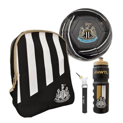 Complete Set: Everything young Newcastle fans need in one brilliant essential football gift set. Includes an official size 5 football, a spacious gym sack, a sports bottle, and a pump. Ideal football gifts for boys, girls, and kids who love their team Match Ready: This tournament-grade size 5 football features 32-panel construction and a reinforced bladder that keeps its shape through countless training sessions, helping young players build skills with confidence Carry Everything: The Stripe gym sack holds all your gear while the 750ml aluminium bottle keeps you hydrated during intense matches. Practical football related gifts for boys who live the game every single day Built Tough: From a machine-stitched football to durable gym sack materials and a quality pump and bottle, this set withstands daily use – making it a brilliant football gift idea and football-related gifts that last for years to come Fan Favourite: Official branding across every piece lets young supporters showcase team loyalty at school, training, or matches - the ultimate kids football gifts and football collection for any fan