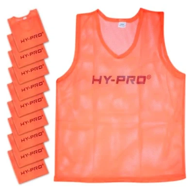 Hy Pro Training Bibs, Pack of 10, Large Size, Orange Mesh, Sports Practice Vests, Lightweight, Breathable, Football Rugby Equipment