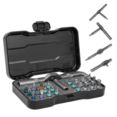HYCHIKA 24 in 1 Ratchet Screwdriver Set Mini Reversible Handle High Torque Wrench Tight Quarter Right Angle Offset Bit