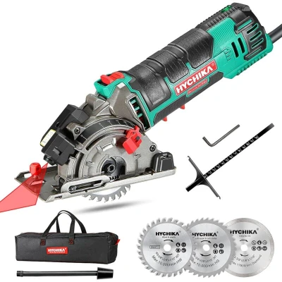 HYCHIKA Mini Circular Saw, Saw with 3pcs Blades (85mm), Scale Ruler, 500W Pure Copper Motor, 4500RPM Ideal for Wood, Soft Metal, Tile and Plastic Cuts